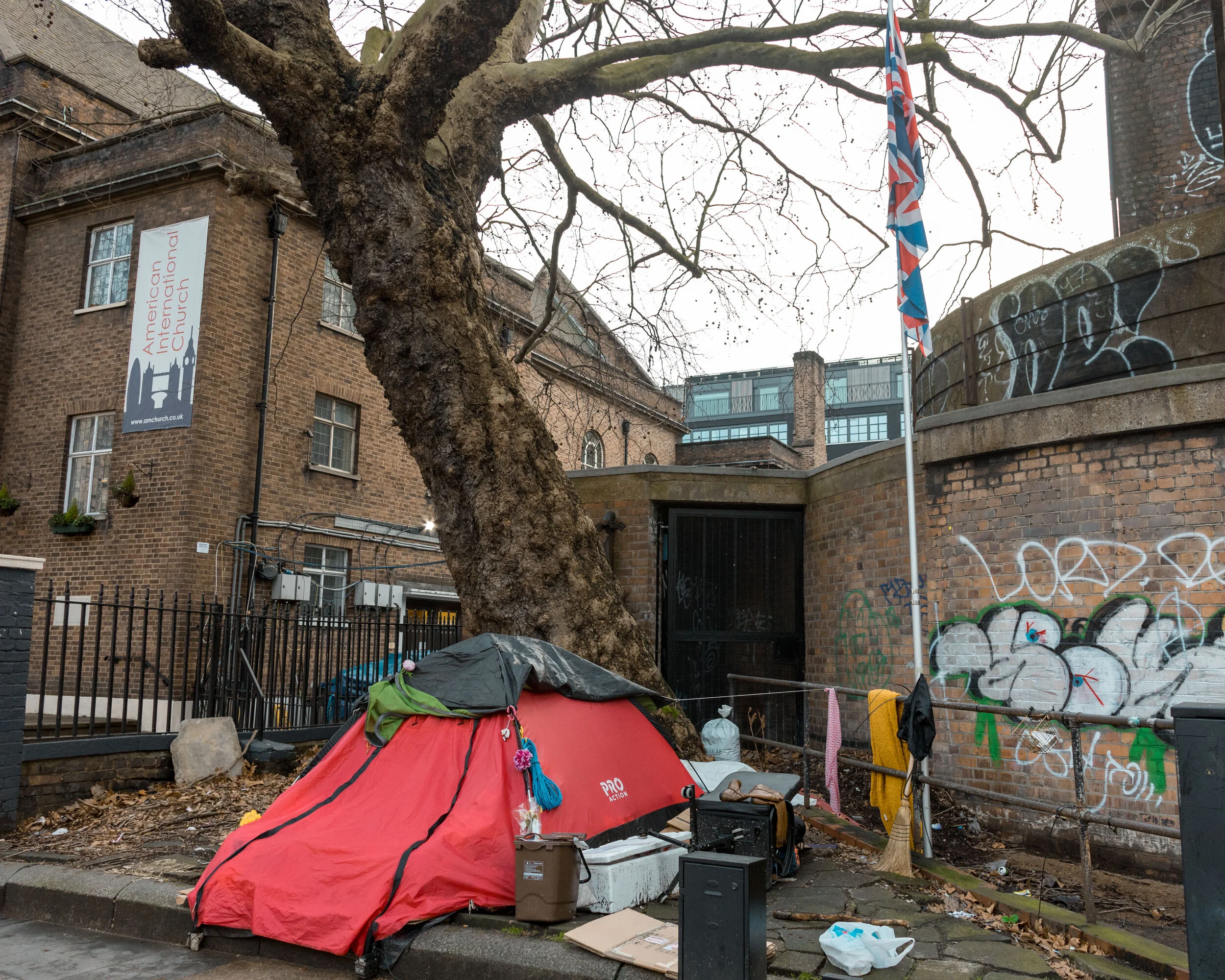 A photo essay documenting poverty in London, featuring the livelihood of the working class and the under-privileged, contrasted by high-end private properties found within nearby neighbourhoods.